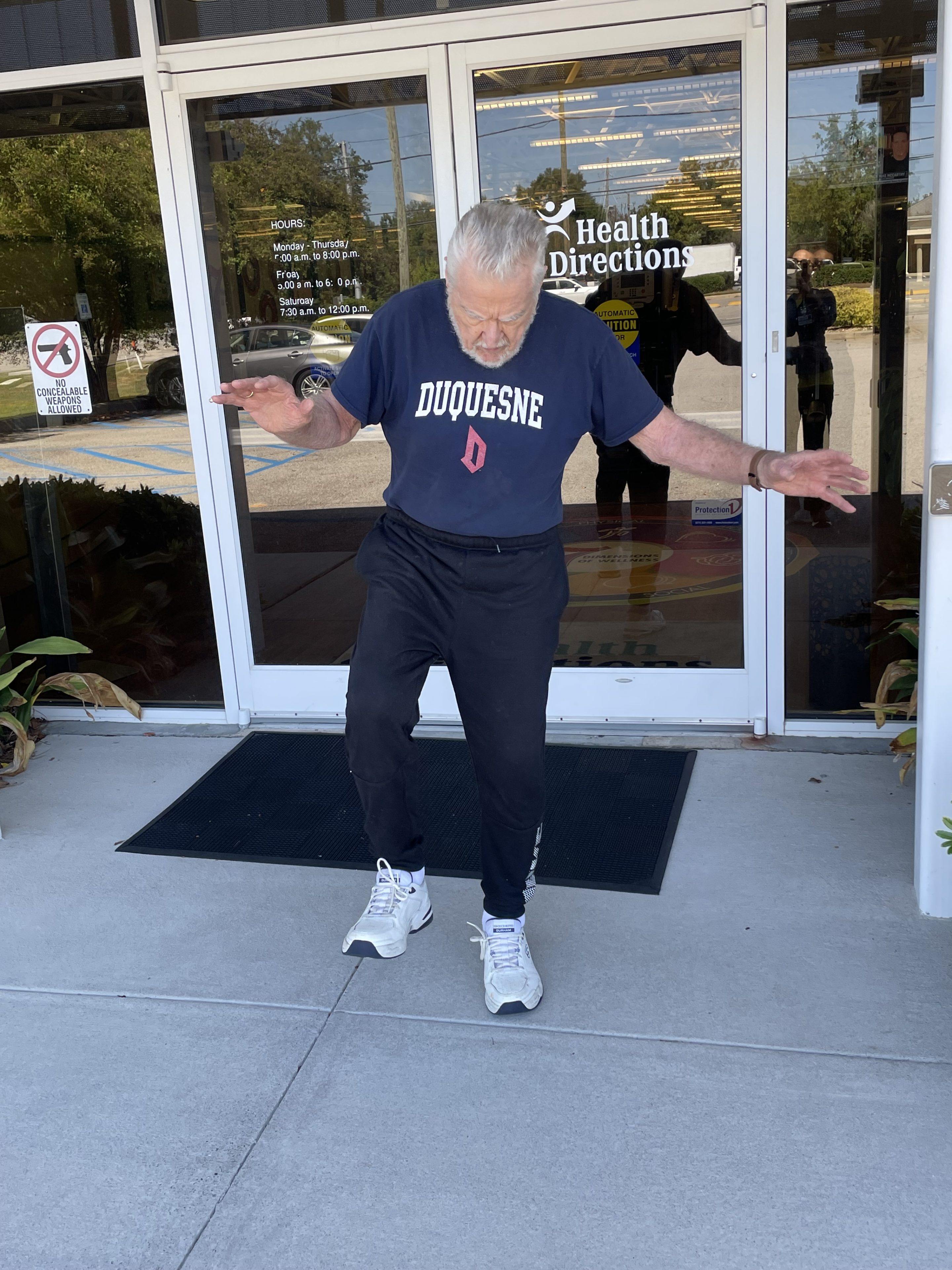 The picture that accompanies this essay, taken by Eddie my Zumba teacher at Health Directions, shows me avoiding a crack. My dear mother is in heaven with back intact.