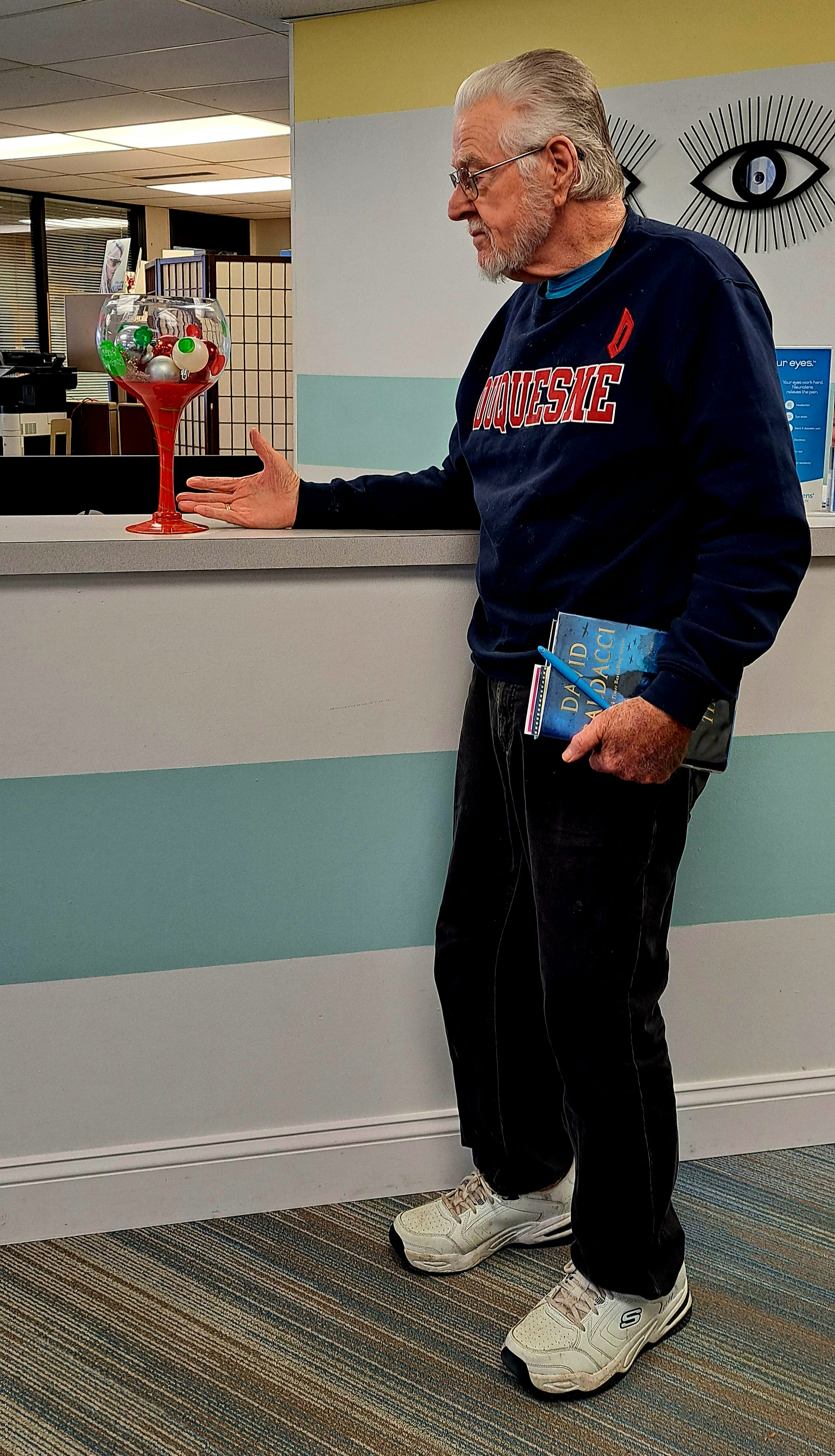 Thanks to Joyce who took this photo of me regarding a bowl of Christmas balls.